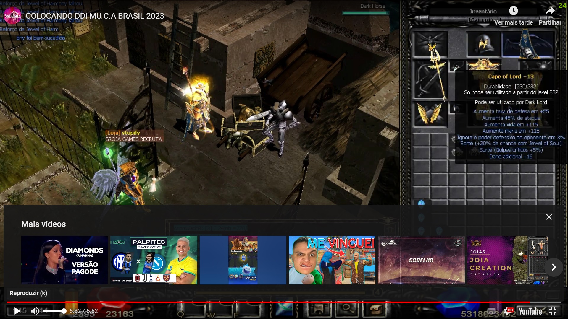 Boa eu não gravei upando meus itens no evento kkkk, quero ver se eu decidir por Ddi nas partes dm, vou gravar a postar por se tratarem de partes raras do DM kkkk, tinha ele completo +9+sdrvpvm, mas quebrei 2 partes :/, resto foi +13 kkkkk