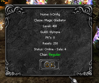 Seria interessante tbm, mostrar se o char e VIP ou não. Sempre tem um espertinho pra falar que n ta no lv de resetar ou que n pode colocar /autodc pq n e vip.