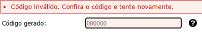 - No campo “Código Gerado”, insira o código que o autenticador fornecer.