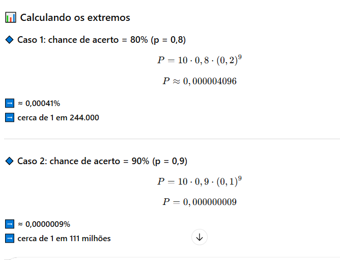 chance individual por tentativa, e não garantia de sucesso ao longo de várias tentativas consecutivas.