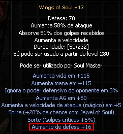 Quanto aos adicionais, o que você pode colocar somente são os adicionais da Jewel of Life, os demais adicionais dependerão de como será a fusão na Chaos Machine, ou seja, não tem como um jogador alterar os adicionais agregados às asas/capa.