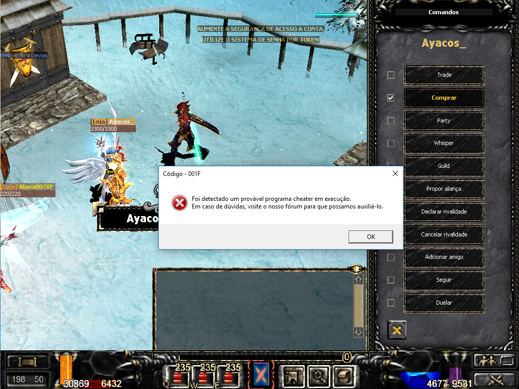 Olá! Bem, depois que o servidor voltou, tomei entre 10 a 12 anti-cheats. Não conseguia logar que já acusava de imediato. Mesmo não fazendo o uso de programa algum. Até tentei gravar mas acabou não dando certo. Vocês podem recomendar alguma coisa sobre isso? Obrigado!