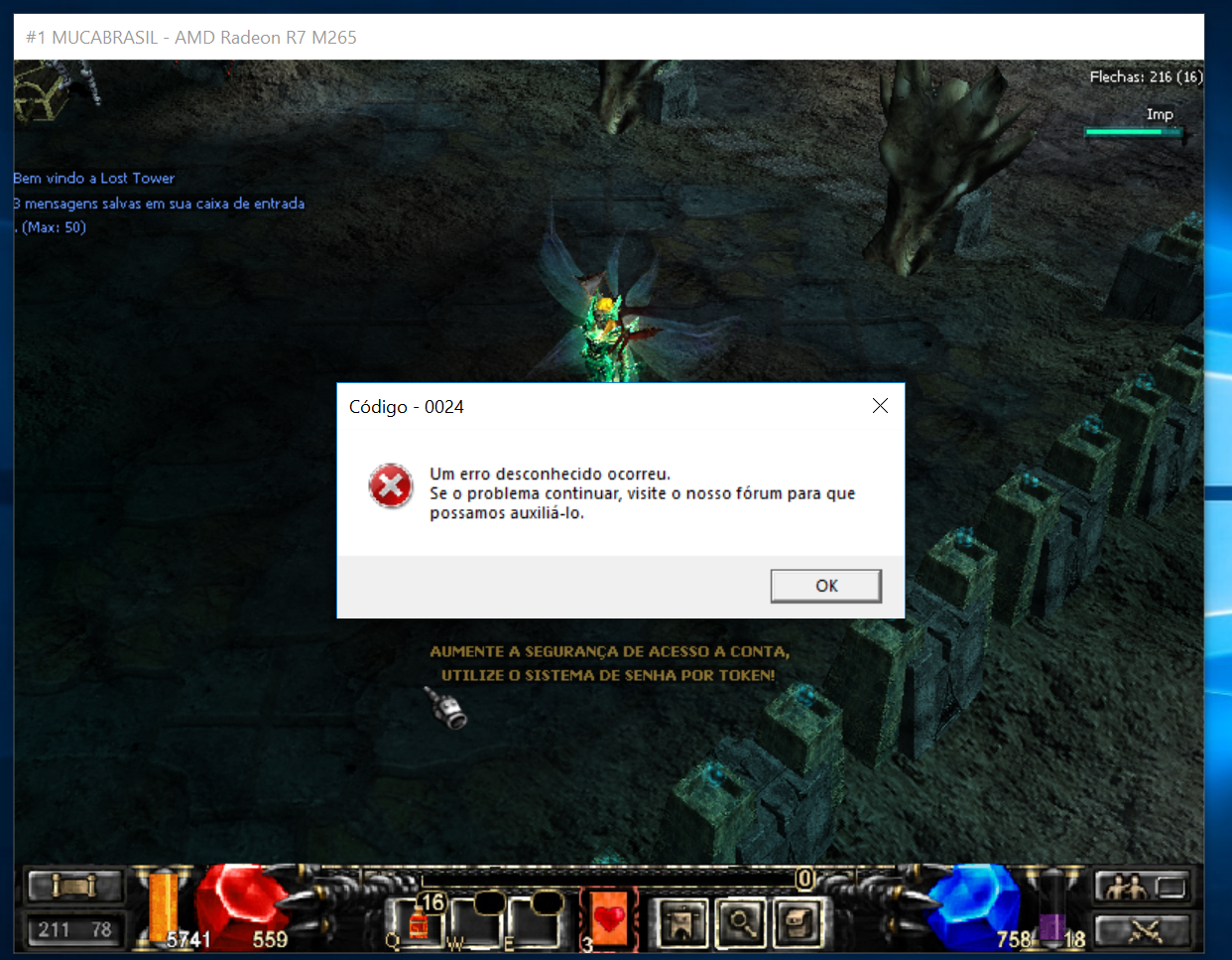 o problema é, que ao selecionar a placa gráfica de alto desempenho (AMD R7 M265) e iniciar o jogo, logo após a tela de escolha do personagem, aparece o erro 0024, esse problema não acontece quando seto a placa da intel (HD Graphics 4400)