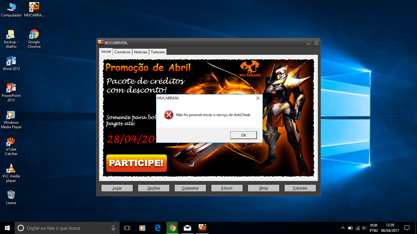 Só aparece a msg: Nao foi possivel iniciar o serviço Anticheat