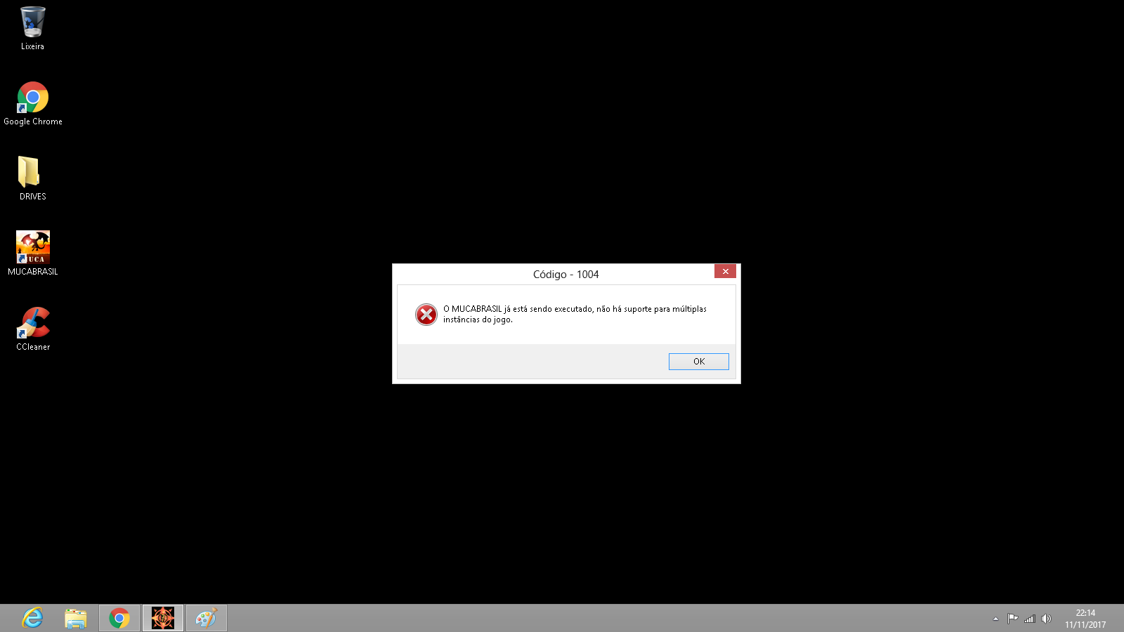 Mata os processos "mucabrasil.exe" e reabre o jogo.