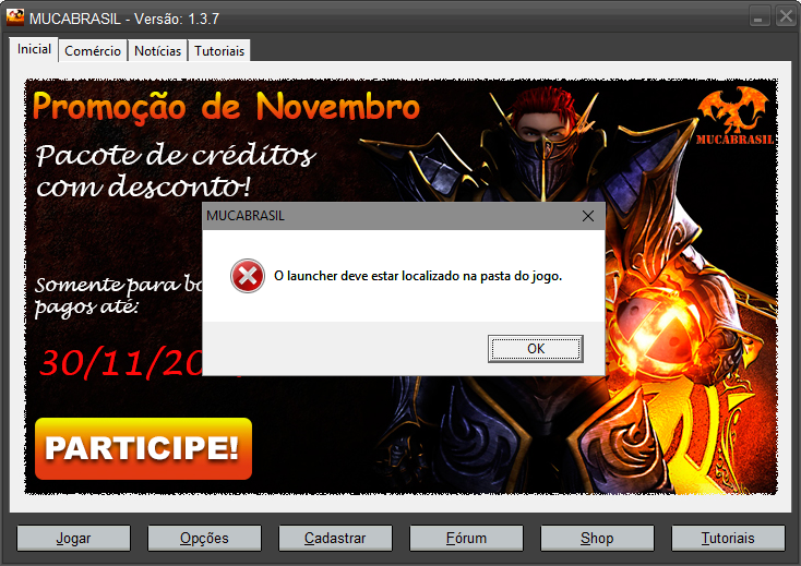 Ola estou tendo dificuldades com o cliente 1.4.0.0 pois eu baixo ele no site e instalo porém depois de termina a instalação ele abri a tela de atualização porém não acha atualizações onde aparece a seguinte mensagem de erro "Não foi possível verificar a existência de atualizações para o jogo." ao clicar em OK nessa mensagem abre o home do jogo porém na versão 1.3.7 e a clicar em jogar aparece a seguinte mensagem "O launcher deve está localizado na pasta do jogo" e apertando em Ok ele fecha tudo.