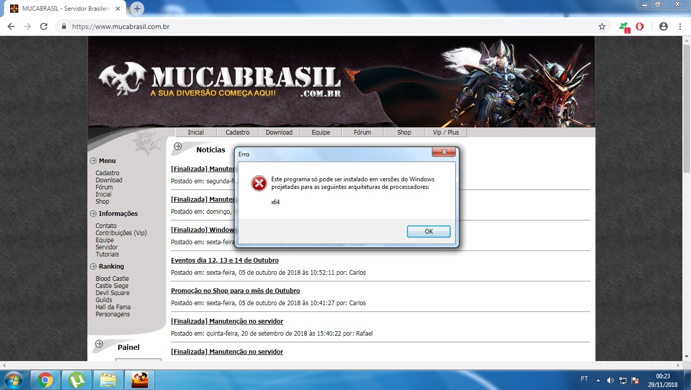 Olá, estou tendo problema com versão do windows... Pois jogo apenas no meu trabalho e não tenho como tá mudando a verão do meu sistema somente para fim de jogo, se possível mandar por email uma atualizao ou Link exclusivo com client corrigido este erro, agradeço ( Obs:estava jogando normalmente com antigo cliente, mais estava sem som, daí desisntalei somente para colocar um novo)