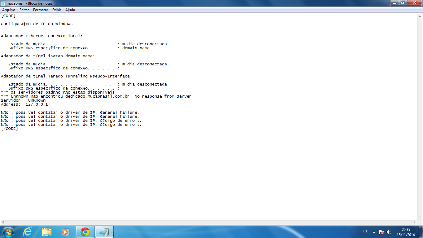 fiz o teste de conectividade mais nao entendo muito disso e mais acho q deu mau ^^