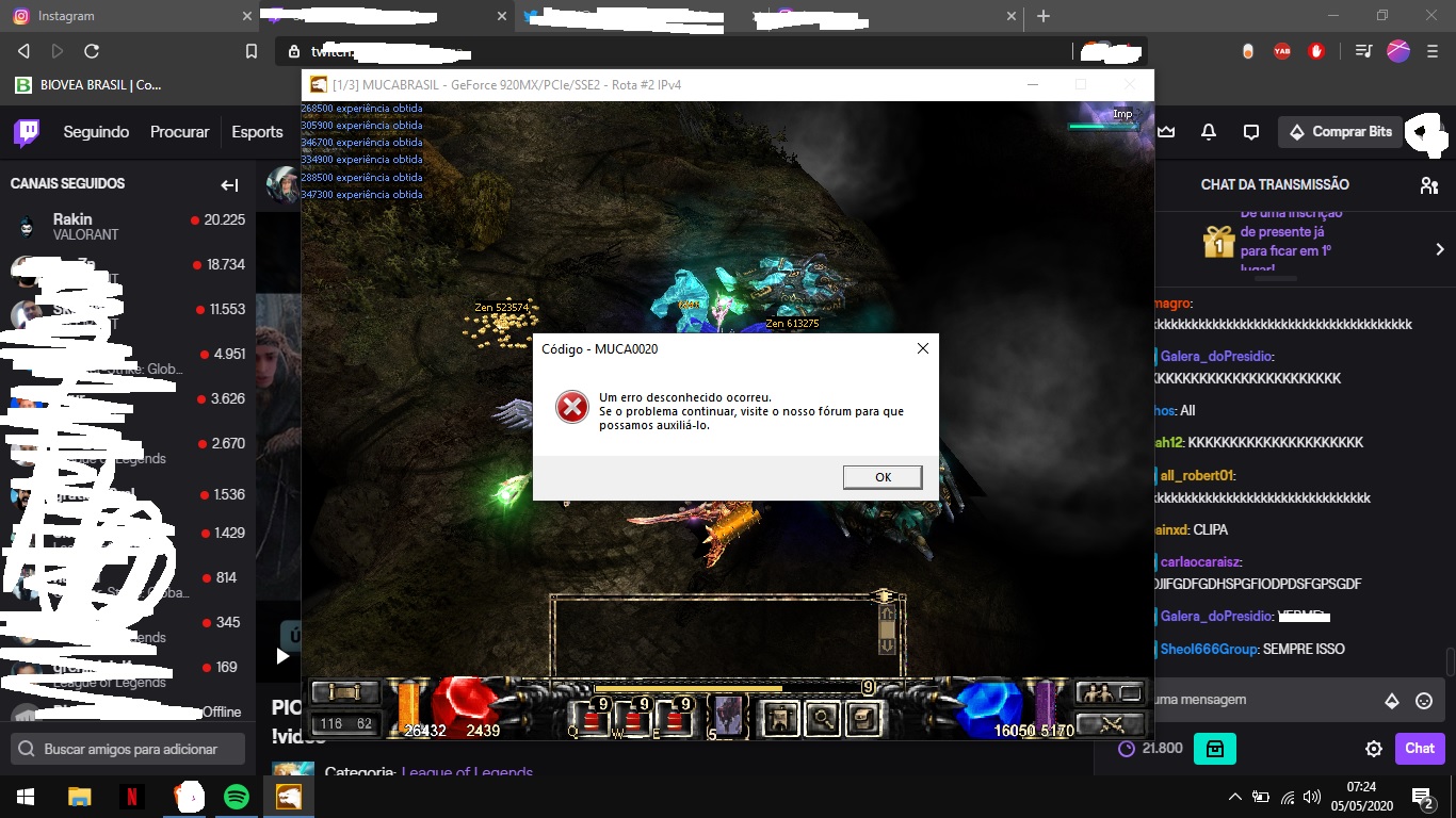 Meu jogo está dando esse erro MUCA 0020 diversas vezes e o jogo fecha, alguem pode ajudar ?