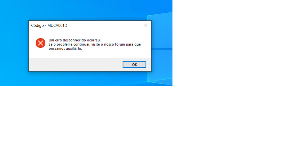 Depois dessa atualização do dia 26/08/2029 ta aparecendo erro MUCA001E em duas maquinas diferentes. Não ta segurando 5 minutos oline