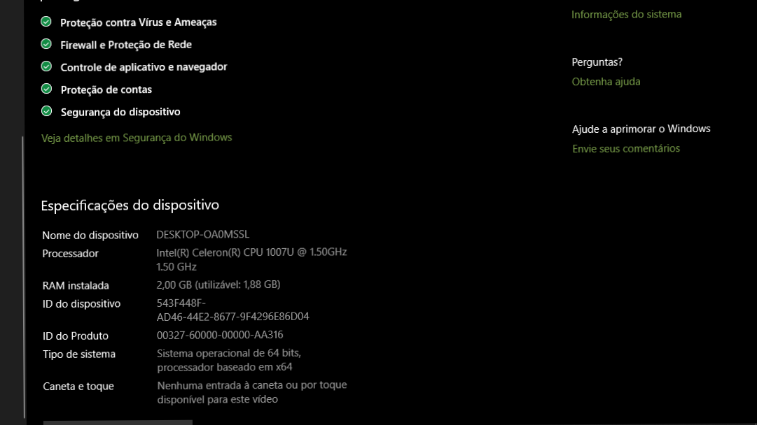 config do pc: Windows 10 x64 Versão 1909 (compilação do sistema operacional 18363.778) ps: acabei de fazer a ultima atualização do windows