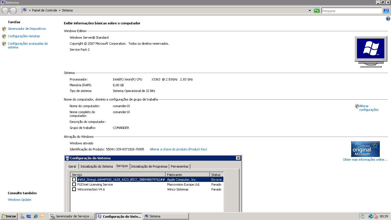 os programas estão ok, agora os serviços tem uns suspeitos lá em.