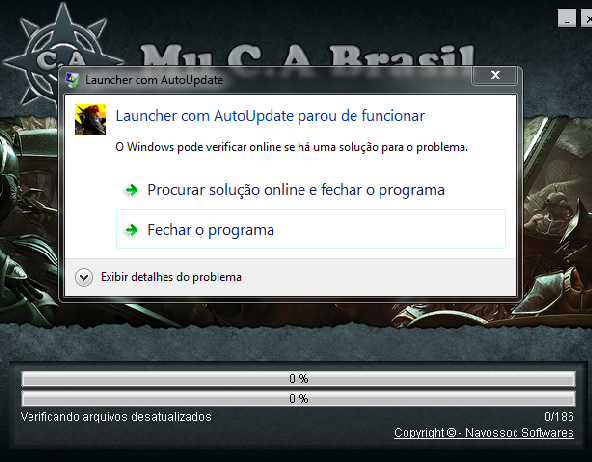 O meu pc ta dando o msmo erro, mas fui ver agora o internet explore tbm está ruim!!! vo v c consigo resolver o problema do IE e depois vejo c com isto resolve o do mu... c der certo aviso!!! ;)