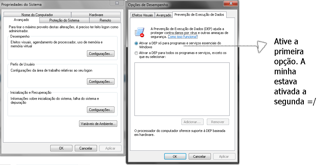 Fui em configurações avançadas do sistema e fiz tal procedimento...