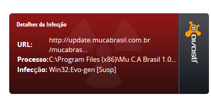 Aguardando Resposta de um ADM sobre meu problema .Lembrando sobre o que se trata Uso Avast em meu pc e n e de agora n sempre usei o Avast e jogo MU C A desd de 211 Nunca aconteceu o que esta acontecendo agora seguinte o Avast mando alguns arquivos do MU C A pra quarentena e diz que e vírus eu já tentei d tudo mas n a como loga o Avast broqueia ai o que eu fiz exclui o arquivo que esta em quarentena depois desabilitei o MU C A e fui disco E deletei a pasta do MU C A e baixei outro instalador do MU C A continuou da msm maneira alais ele nem instala o Avast já joga ele direto pra quarentena só n quero a msm desculpa de sempre pq nesse caso n tem nada ave com lag de conexão e outra Meu PC quem o formata e eu MSM ou seja impossível ele te algum vírus porq n faz nem 3 semanas que eu msm formatei ele.