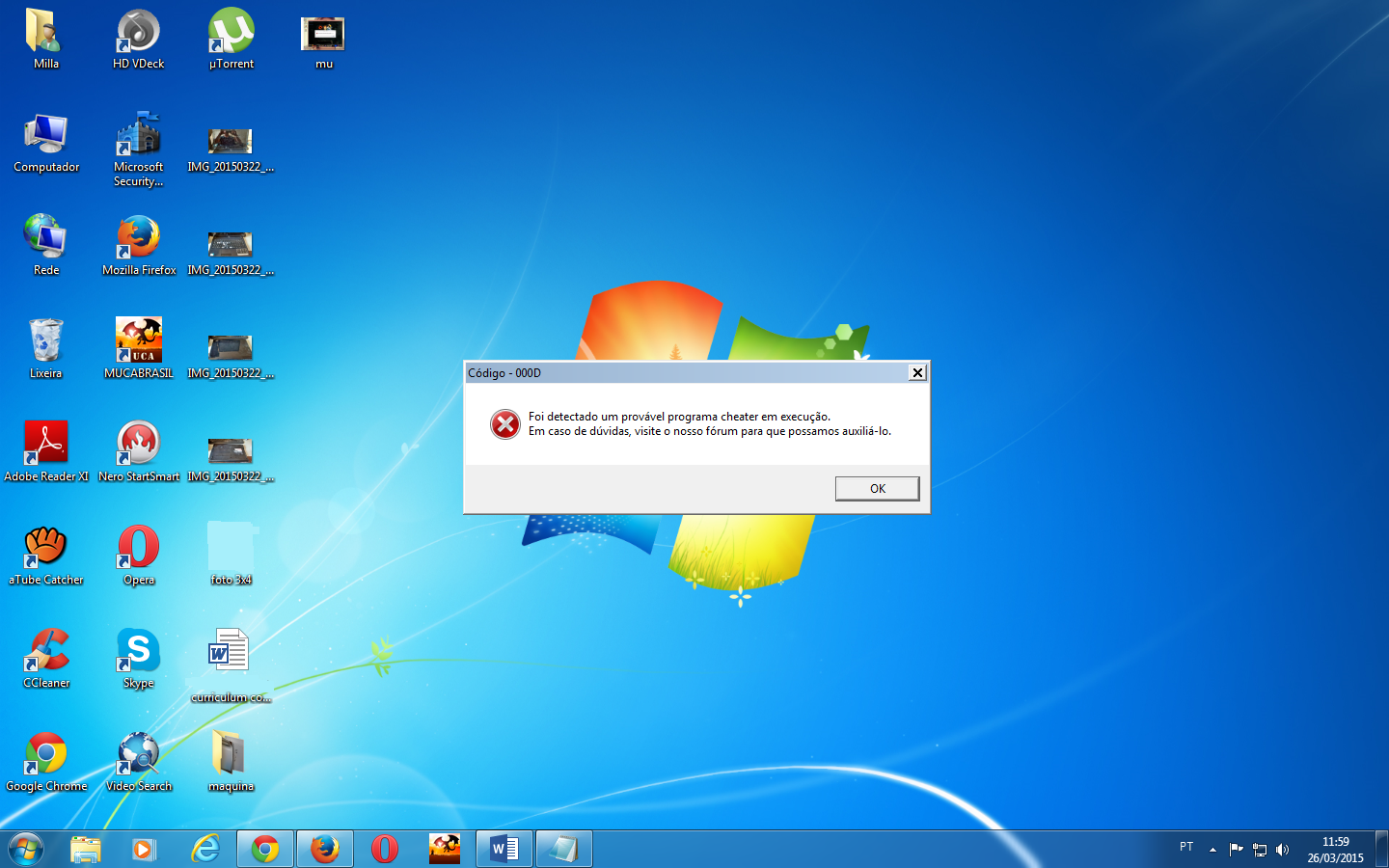 Deve ser alguma coisa na maquina virtual que o Mu acusa como Cheat...