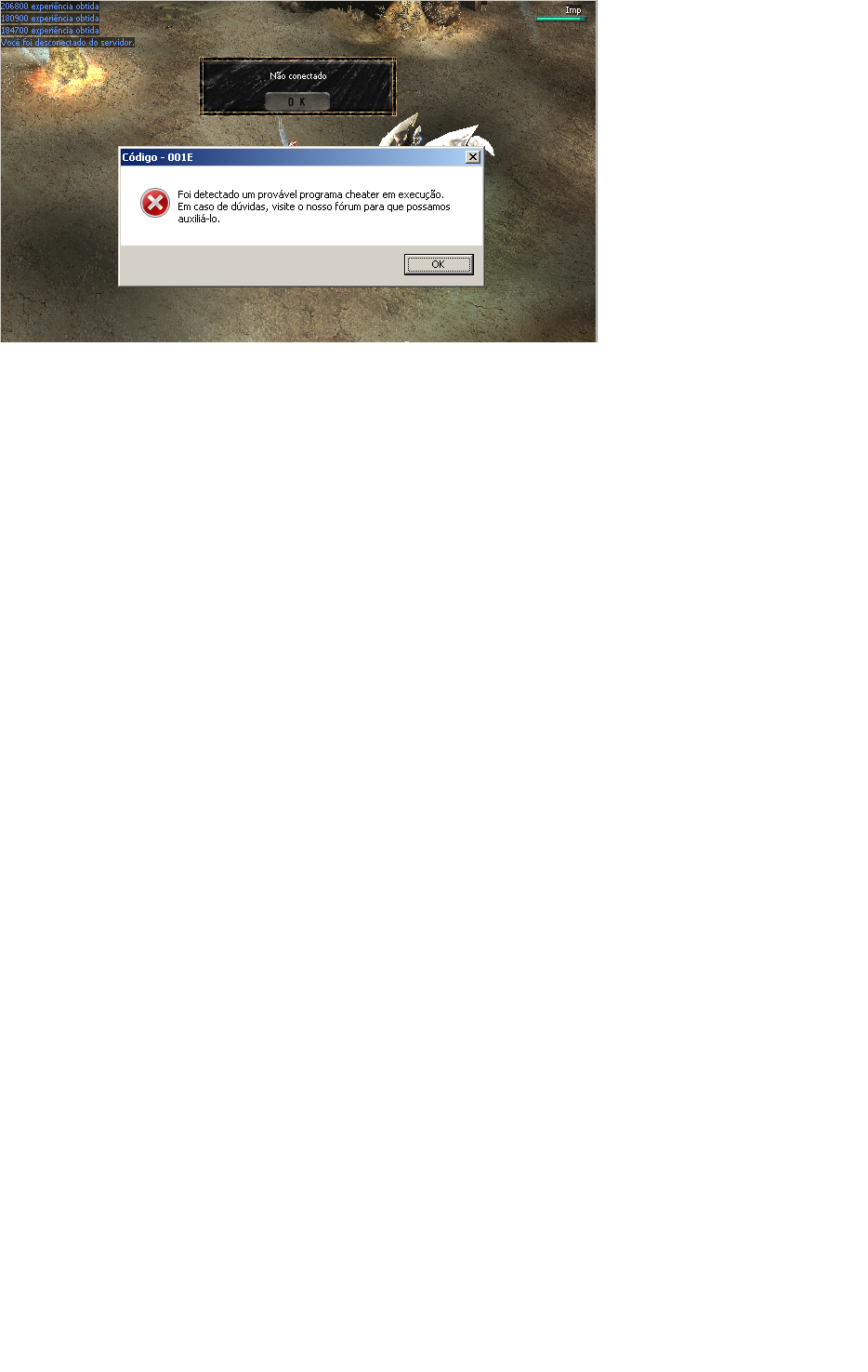 Foi detectado um programa AntiCheat ai logo em seguida só desconectado isso se eu tiver em um único usuário