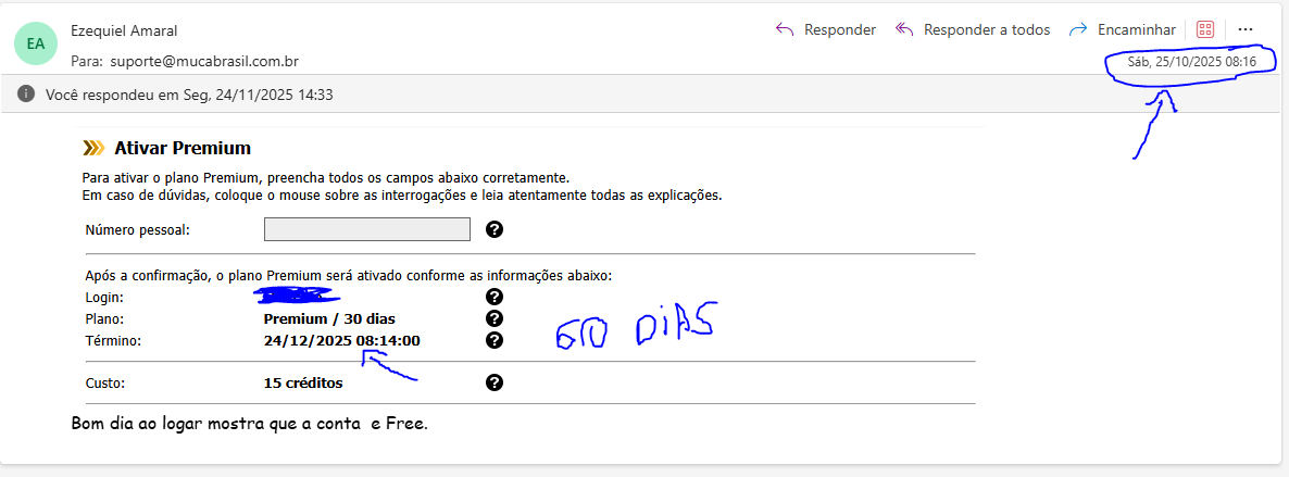 Esse e-mail foi enviado pelo suporte no dia 25/10, onde consta que o vencimento do VIP seria em 24/12.