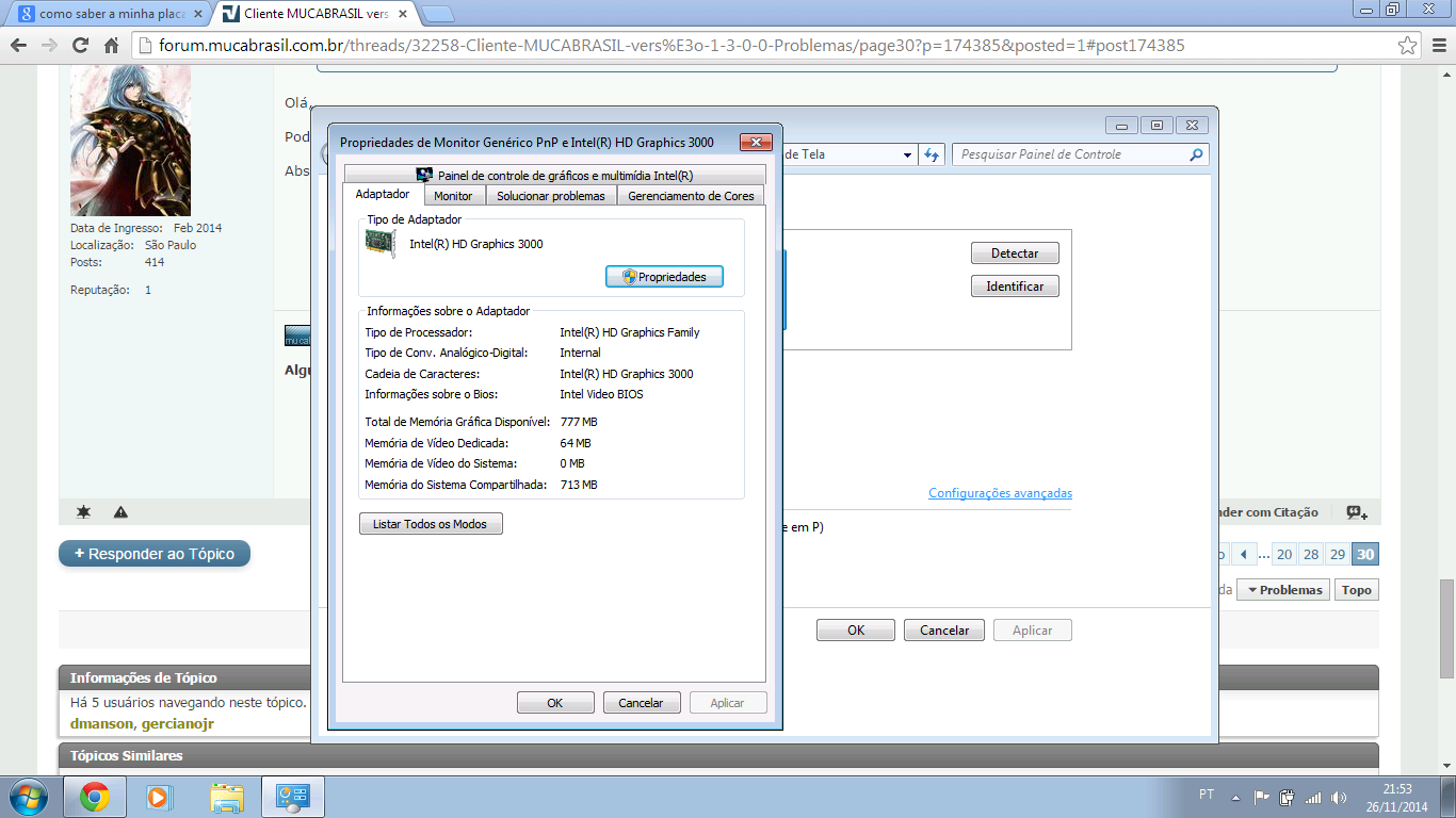 Qual é o seu Windows, placa de vídeo e versão do driver de vídeo que está instalado?