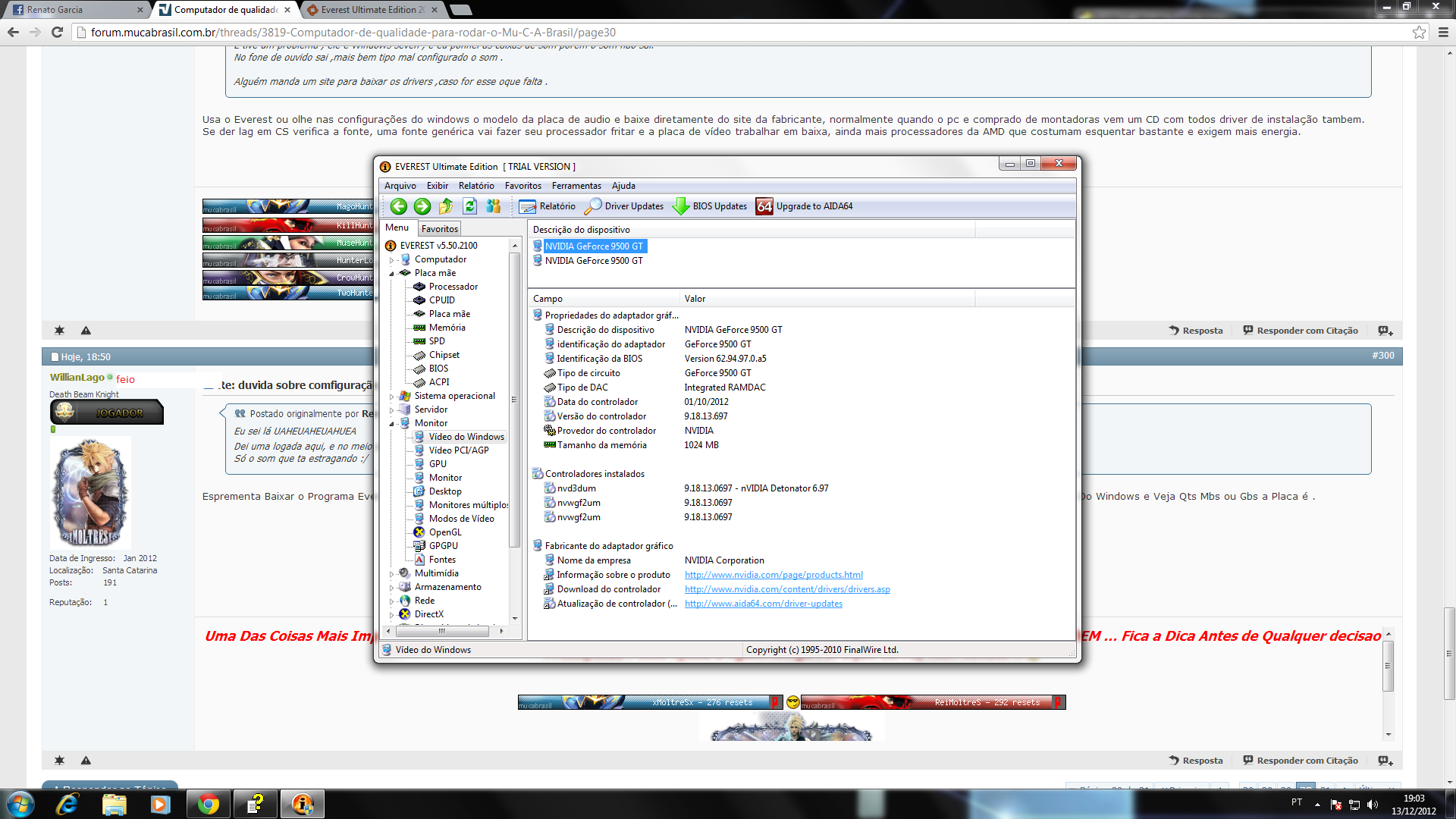 Olá , baixei o que vocês pediu ,eu não sei olhar nada , então segue a print , e me dizem se é bom o PC , e porque ta sem som por favor..