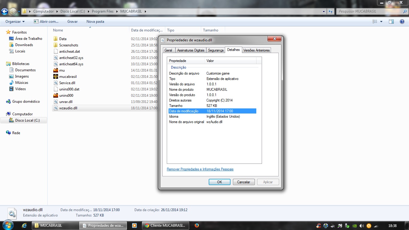 Faz um favor, tenta deletar a sua wzaudio.dll, então ao tentar abrir o jogo, ele baixará a mais nova (pelo menos é isso que tem que acontecer se o provedor não faz cache), mas quando baixar novamente a wzaudio.dll, tire e poste outra print da aba detalhes.
