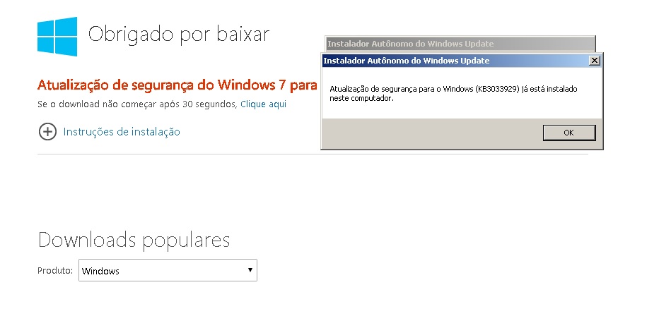 A atualização de segurança KB3033929 é fornecida pela Microsoft, as vezes ou o usuário não consegue instalar ou quando consegue, ainda há problemas para rodar o cliente porque a instalação supostamente não ficou como deveria, nesses casos recomendamos utilizar o Windows 8.1 ou o 10, pois não necessitam da KB3033929 e são sistemas operacionais mais recentes.