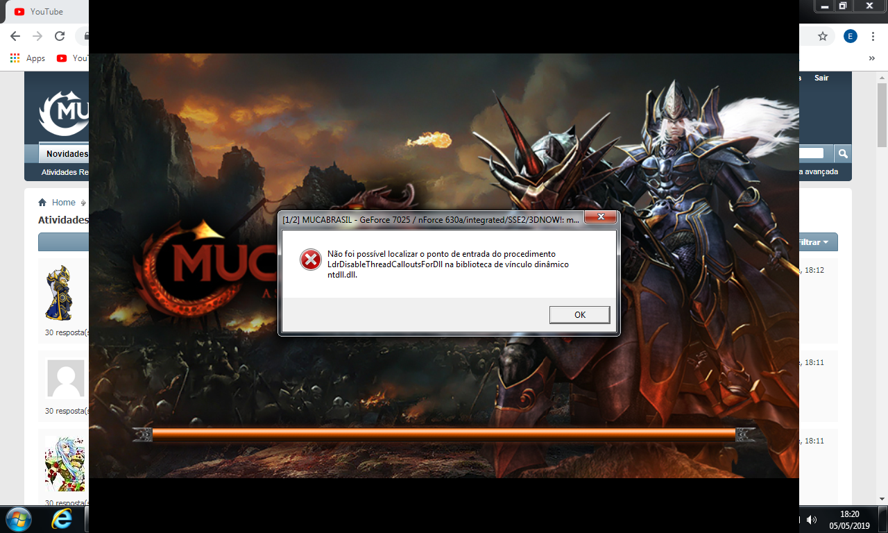 Mesmo erro de todo mundo, coloquei o muca com erro no fundo e informações sobre o sistema no mesmo print.