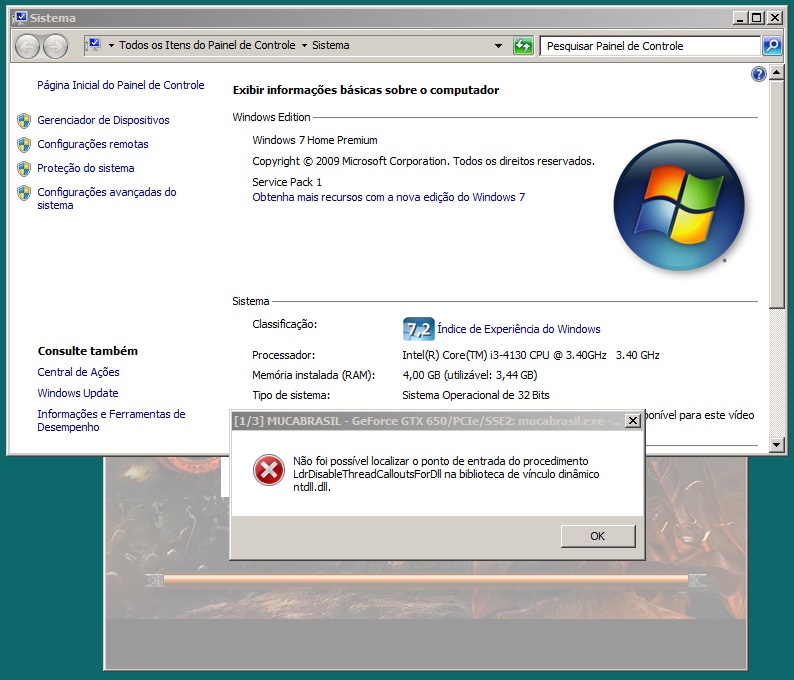 Tenho outro PC igual somente de 64 Bits sem erro.
