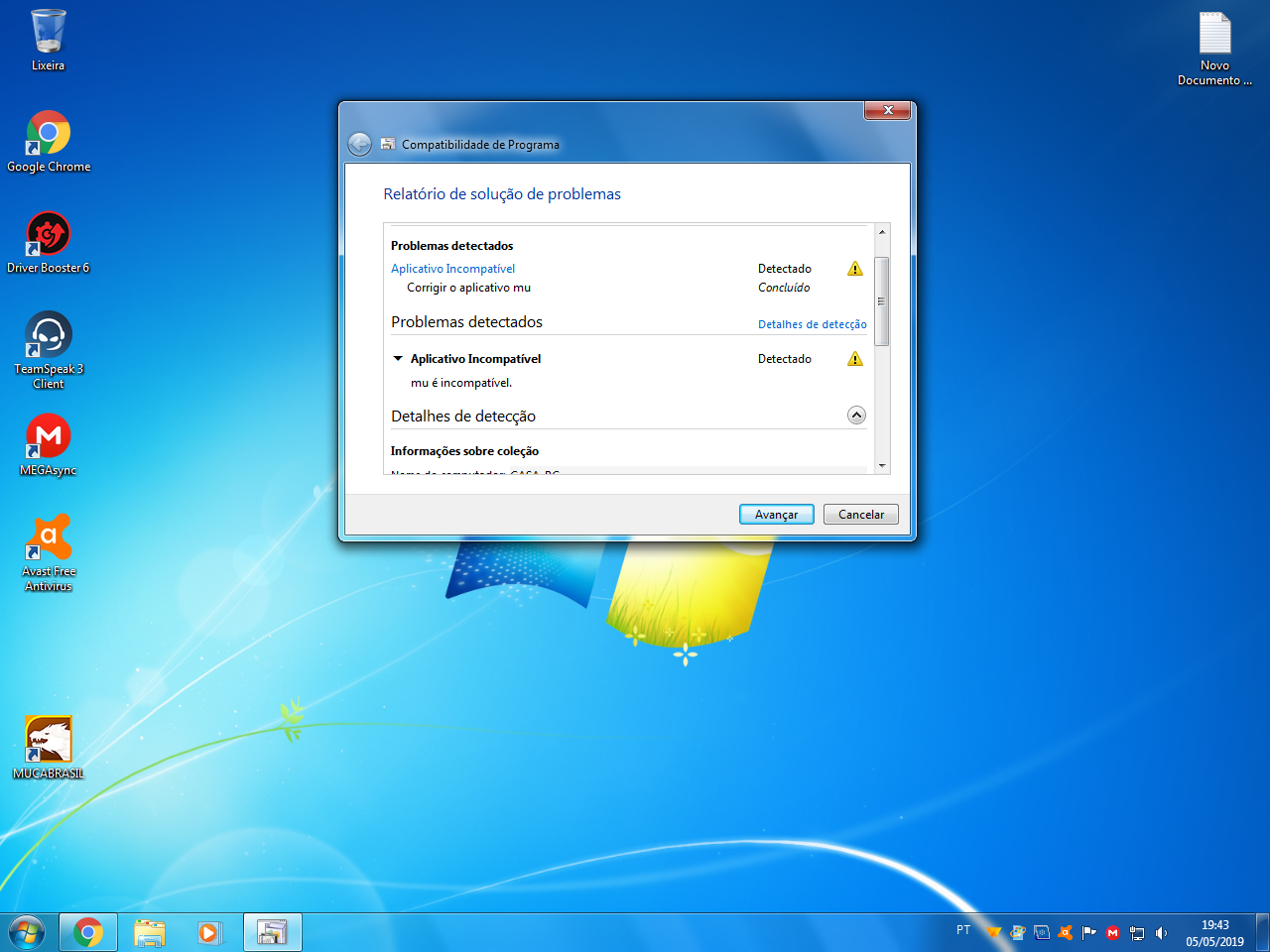 que o mu está incompativel com meu computador