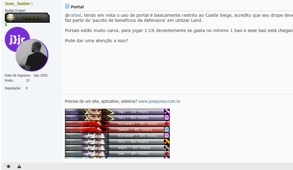 Outra coisa, vai CS quem tem sign e cumpre os requisitos.