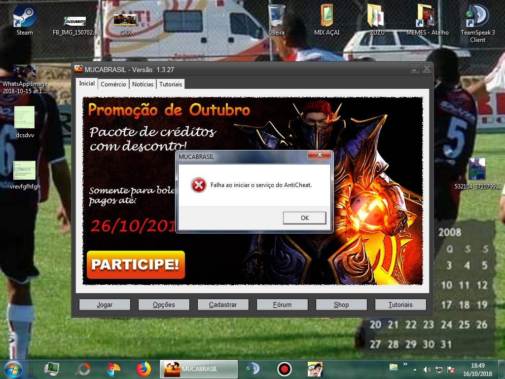 Assim que clik em [jogar] já aparece a msg anti hack! nem consigo logar.