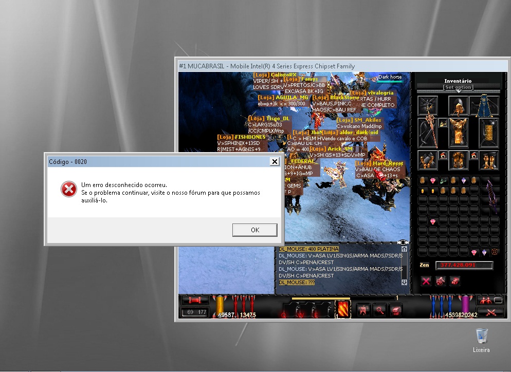 mano no estou usando nenhuma programa apenas estou com as 2 janela do mu logada ai do nada aparece a msg do erro 024 e fecha as janelas affs :(