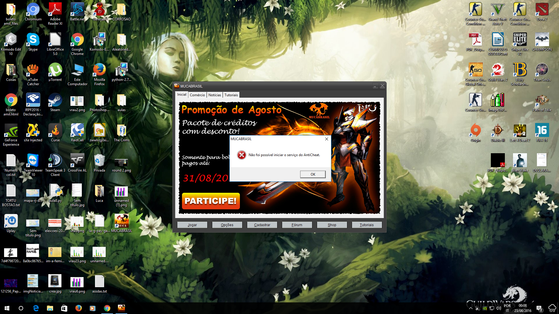 Meu amigo vem tendo um problema des de ontem depois da atualização, esta dando erro de cheat, o sistema dele é windows10.