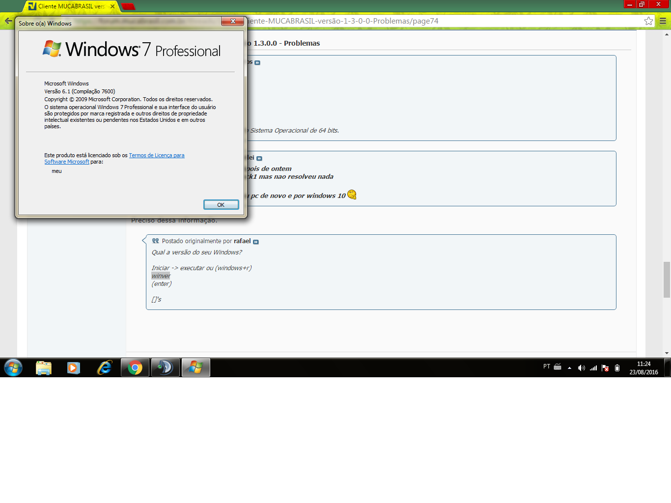 Versão 6.1(Compilação 7601:Service Pack 1)