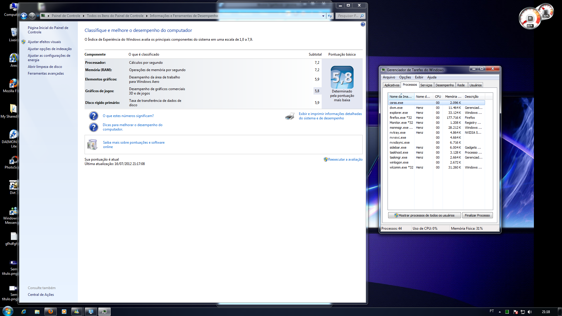Uma foto da aba desempenho também seria interessante, assim como o modelo do seu processador.