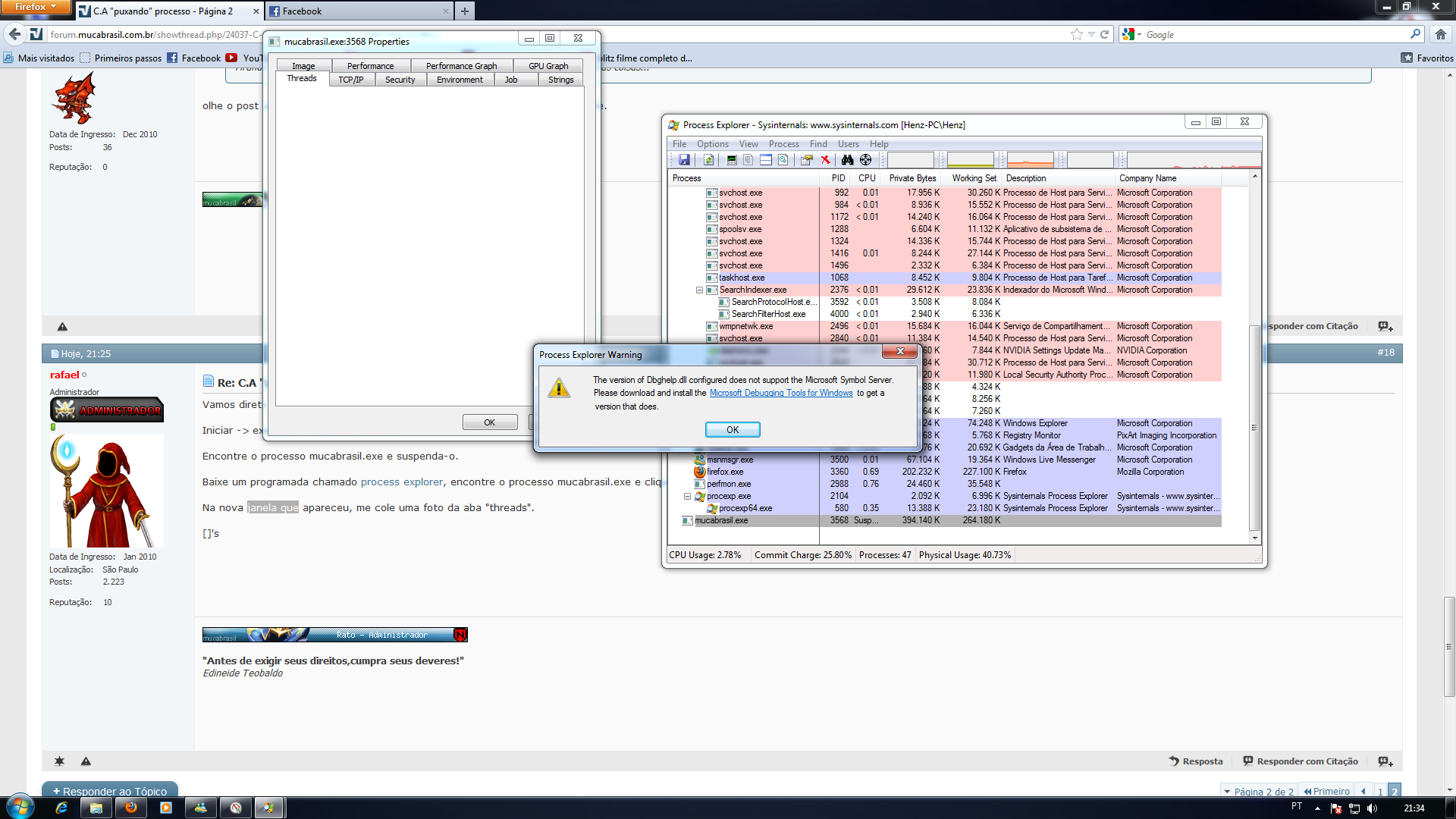 Encontre o processo mucabrasil.exe e suspenda-o.