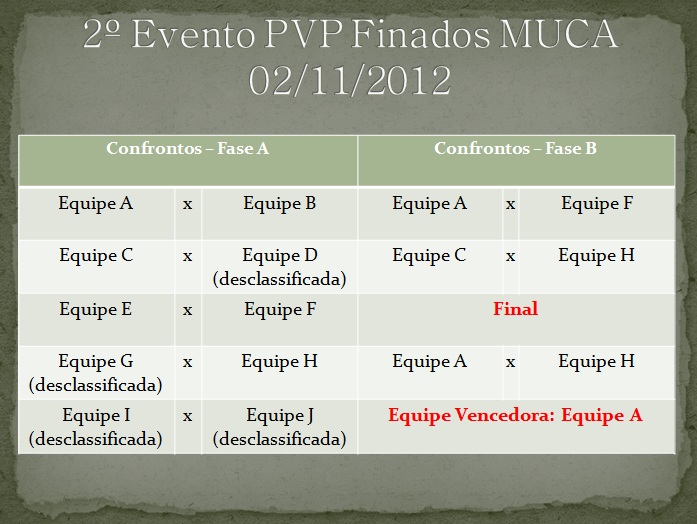 Chegamos ao final de mais um Evento PVP - 2º Evento PVP Finados MUCA!