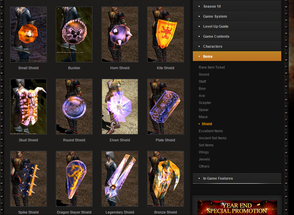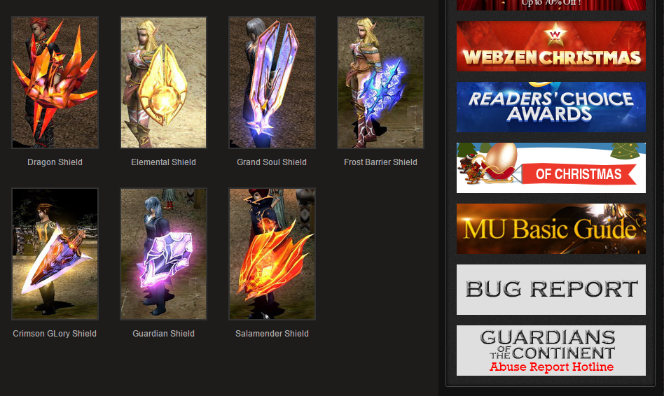Sobre o Shild, usei como base o site oficial da Webzen pra conferir os Shields existentes no Mu Global, segue as prints...
