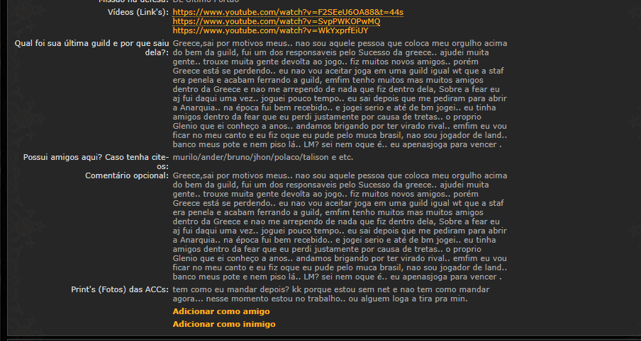 " Obviamente tem obrigaçao de organizar uma guild.. Nao trabalha.. Nao tranza.. 100% mu e lol e quer vim falar da organizaçao dos outros.. Lamentavel"