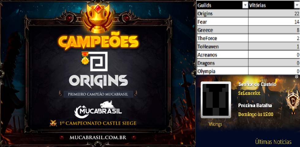 fazer algo assim relacionado a guild vencedora do campeonato, com uma tabela das próximas que estão disputando.