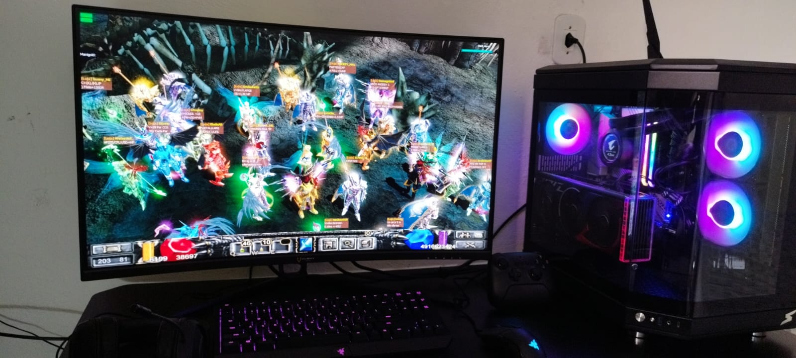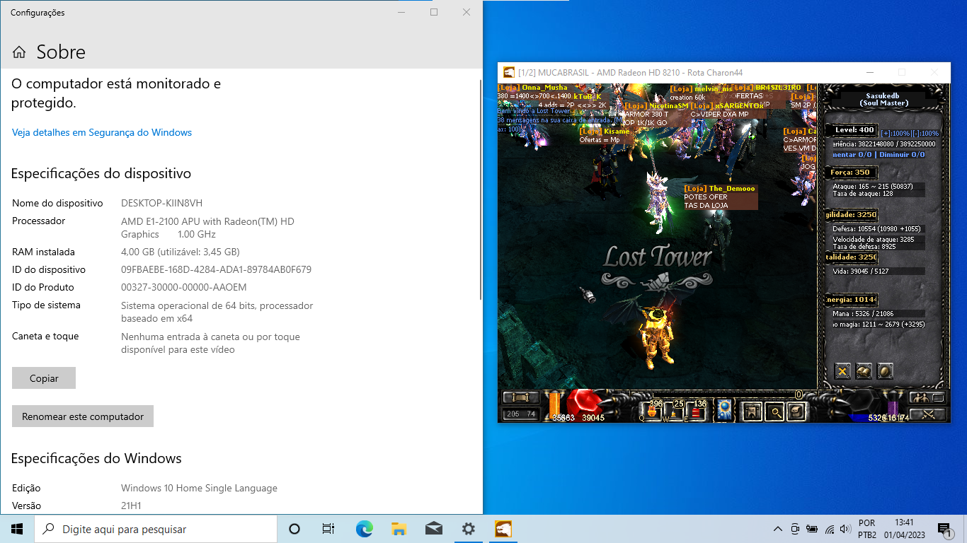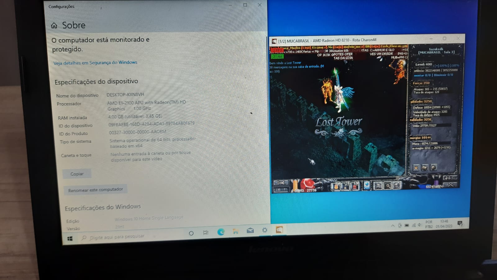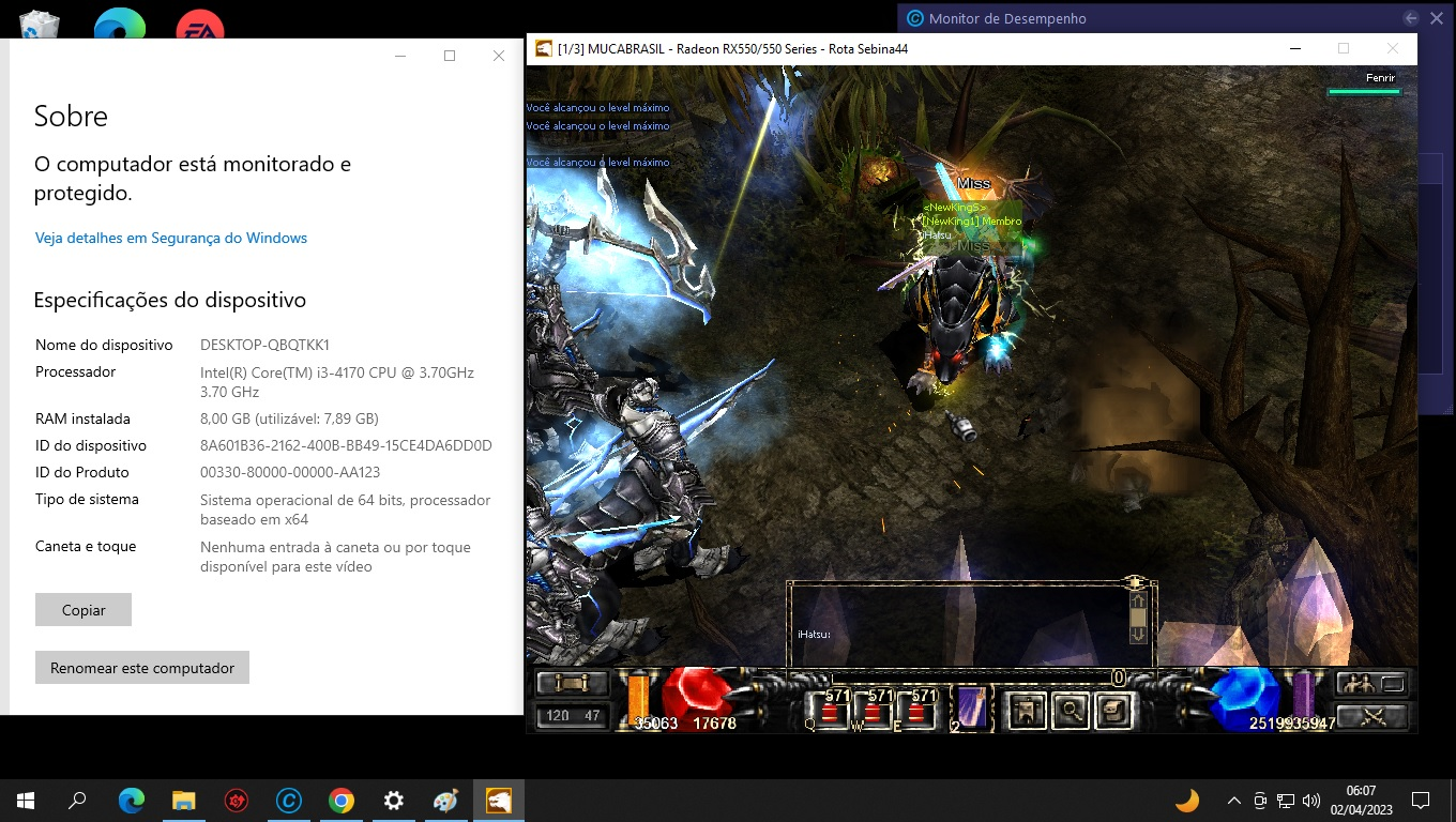 Uma foto com a tela do seu monitor com o seu personagem logado no MUCABRASIL.