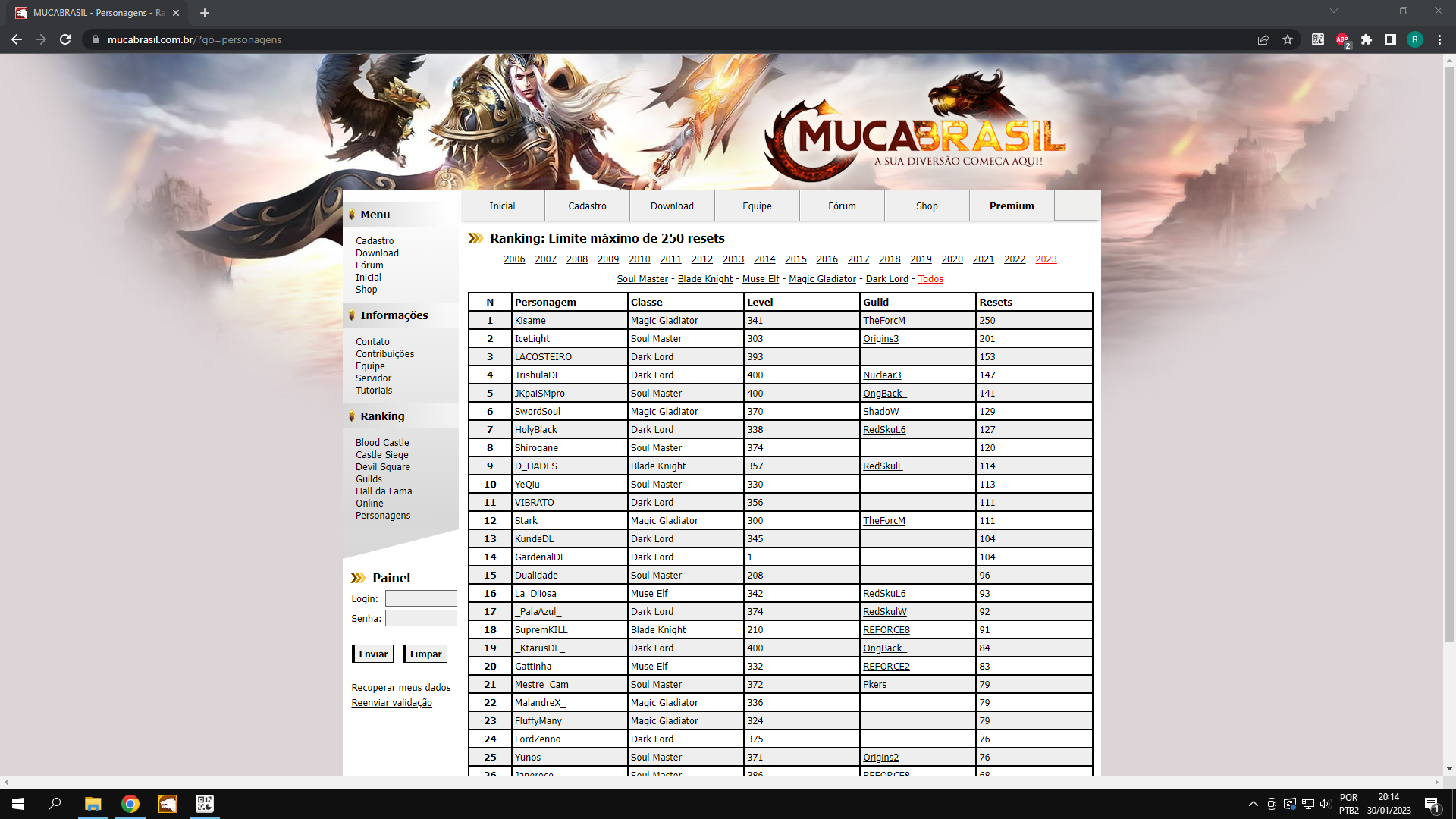 Aí não posso afirmar os reais motivos dessa falta de estímulo, já que 2023 era pós pandemia e que tbm podemos ir finalizando os chars ao Longo dos anos(eu evoluo o char agora ele sobe no Rank de 2021)