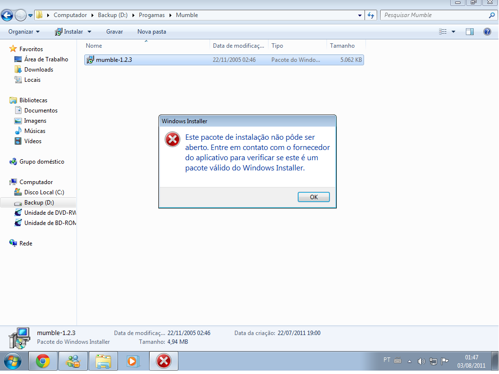 Devido ao Fato de que o Mumble, não Instalar no Windows 7.