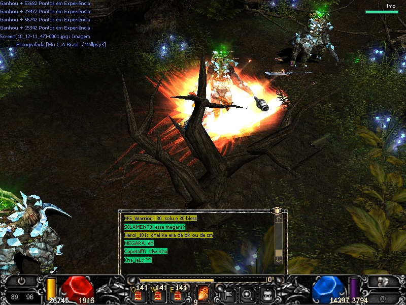 Geralmente upo com o Cavalo mas para ter um dano maior equipo o Imp e o hit cai para um dano de 500 a 4k. Mesmo assim mata mob's que precisao de um dano mais elevado com so 1 hit.