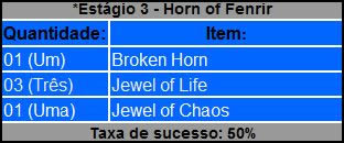 * Se a combinação tiver sucesso você terá criado um Horn of Fenrir. Parabéns, você já tem um Fenrir.