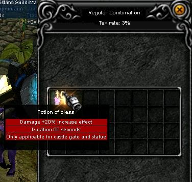 Basta colocar algumas Jewel of Bless na primeira opção da chaos machine. Cada Bless cria 10 "Potions of Bless", que podem ser agrupadas em até 160 unidades num único pote. Gasta-se 100.000 zen para realizar a combinação, que tem 100% de probabilidade de acerto.