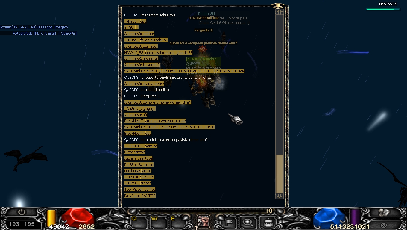 O evento Quiz é um tanto que complicado ser realizado porque alguns jogadores acreditam sempre que foram os primeiros a responder, o que muitas vezes não corresponde a realidade, sendo assim, tirei as SS das perguntas mais importantes: