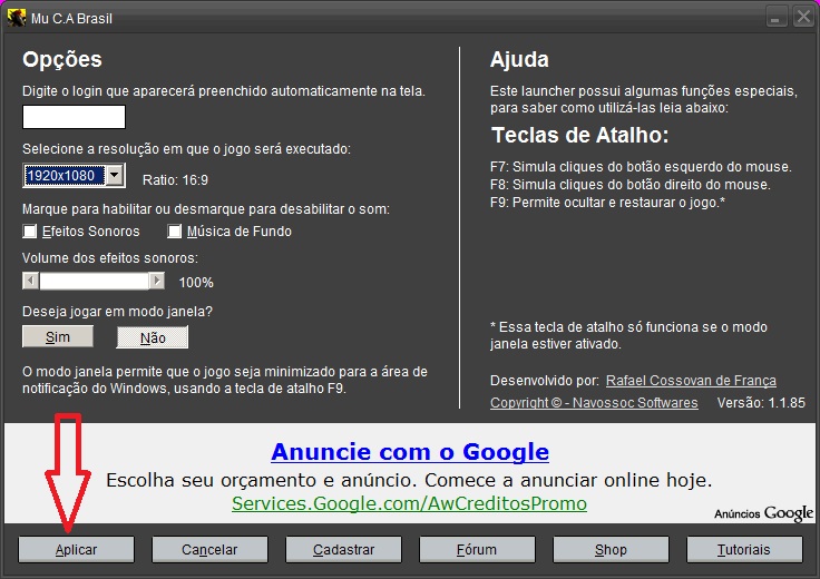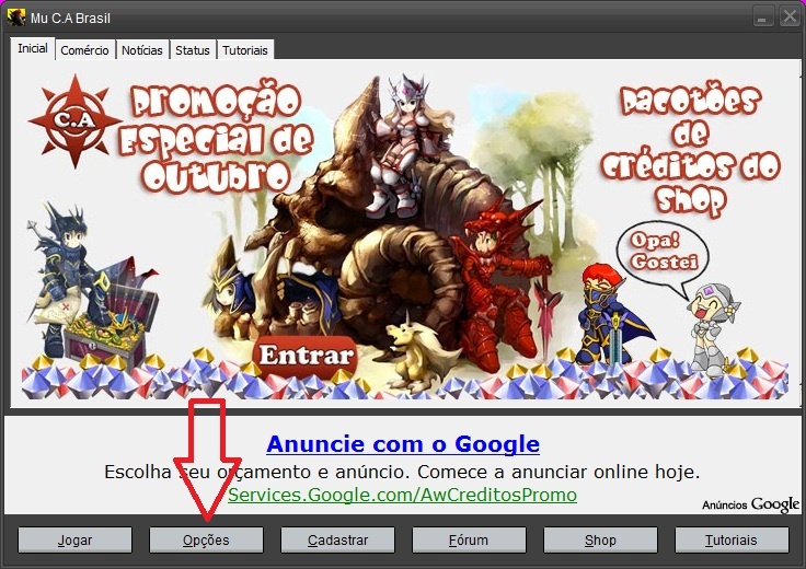 é so vc clicar no mu vai abrir 1 janelinha antes de vc clicar em iniciar vai em opçao
