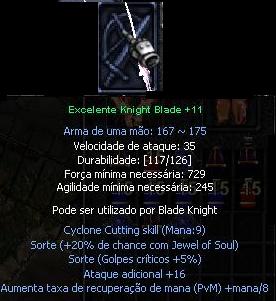 Vendo / Exc knight blade +11+Sorte+atc+rec mana = 30/30