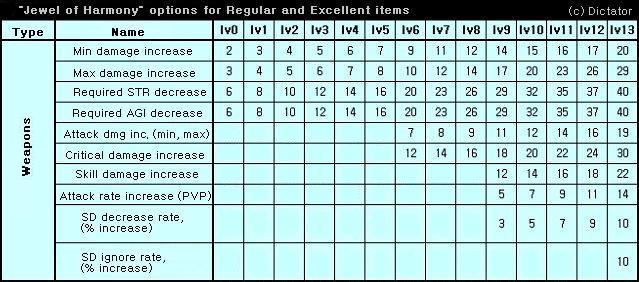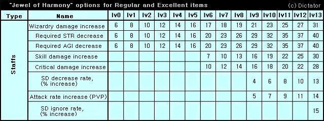 1. tabela Jewel of Harmony.